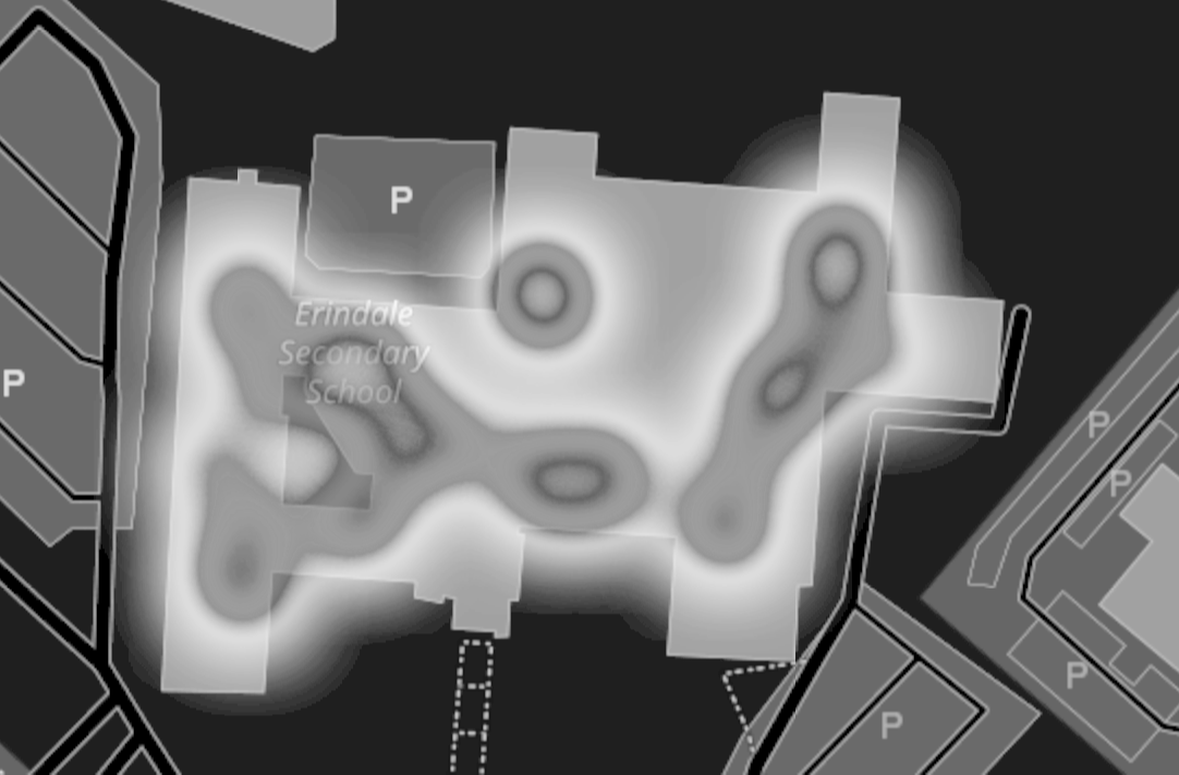 Data visualization pointing Erindale SS students to the spots with the best Wifi and least noise